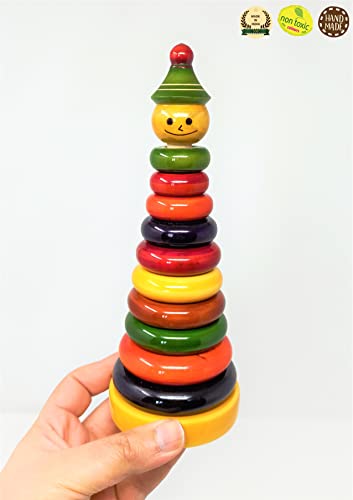 This Clown stacker is a wonderful learning toy. Identify the colours ,size and stack them properly. These wooden toys have been handcrafted by the Artisans of “Channapatna”.This traditional craft is protected as a geographical indication (GI) under the World Trade Organization.It is Made from the Natural Vegetable Coloring Dyes.Non Toxic.Made in India with Love.This toy helps kids in developing Gross and Fine Motor Skills.