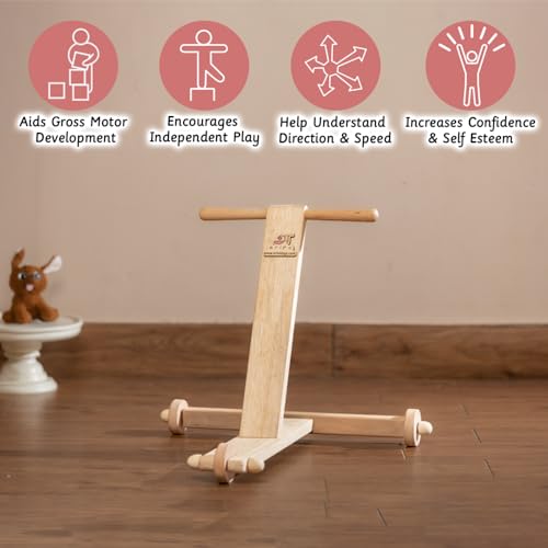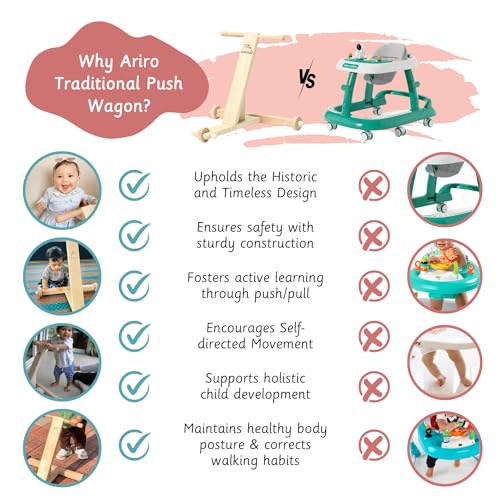 Traditional Push Wagon: Ariro Wooden Push Walker helps in Practice Walking, Orientation and Positioning Schema. The product is for kids from 8 months to 18 months.The product has a warranty of 6 months.