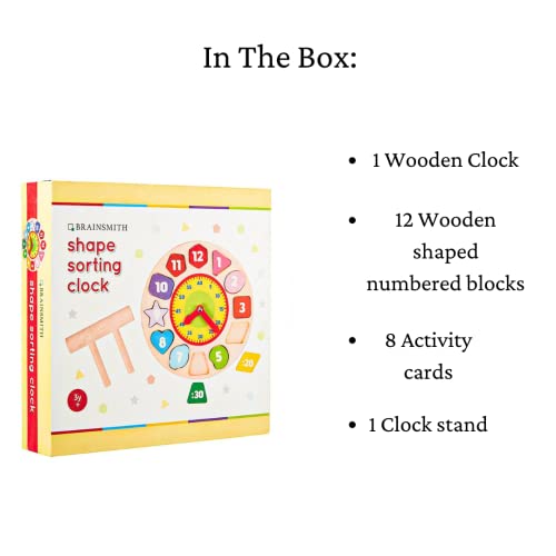 NON-TOXIC WOODEN TOYS: The Brainsmith Shape Sorting Clock is an entertaining toy that is durable, sturdy and light. It comes with educational activity cards to play and learn the daily routine.
