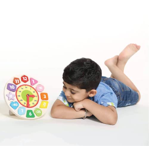 REALISTIC ANALOG CLOCK TOY (3-8 YEARS): Sort shapes and learn time-telling with this educational activity toy for pre-school kids. This brain development toy has rotatable hour and minute hands.