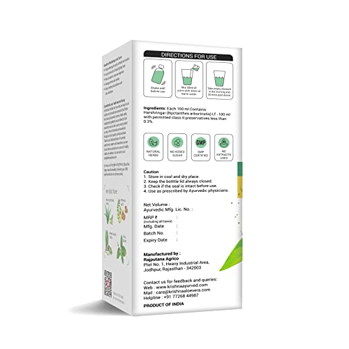 Krishna’s Herbal & Ayurveda Harshringar Leaf Juice is a herbal juice that is beneficial for the overall body.