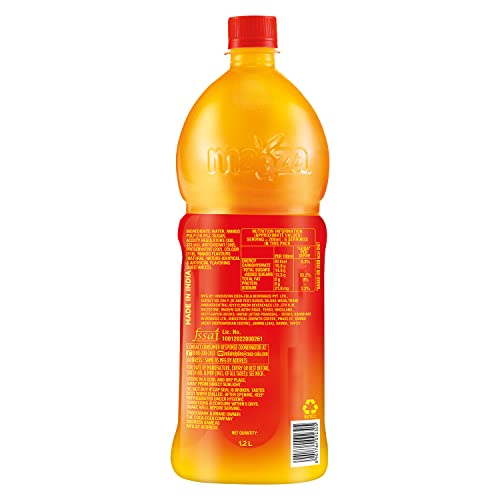 Drive away all your Monday blues and turn your Fridays into Friyays with Maaza mango drink. Synonymous with the very spirit of mangoes, Maaza lets you enjoy the moments of carefree indulgence. This mango drink is universally loved for its taste, colour, thickness and wholesome properties. Made from real mango pulp of hand-picked real Alphonso mangoes, this ready-to-serve fruit drink offers a fulfilling experience down to the last sip. Whether it’s about bringing the joy of mango to your celebrations, enjoying a yummy escape on crazy hectic days, turning frowns upside down and opening up hearts, Maaza is your go-to drink for life’s little moments. It is every mango lover’s first choice, so if you are a mango lover too, then just simply sit, unwind and enjoy aam ka magic in every sip. Storage Instructions: Store in a cool & dry place, away from direct sunlight. After opening, keep refrigerated under hygienic conditions & consume within 5 days. Shake well before serving.