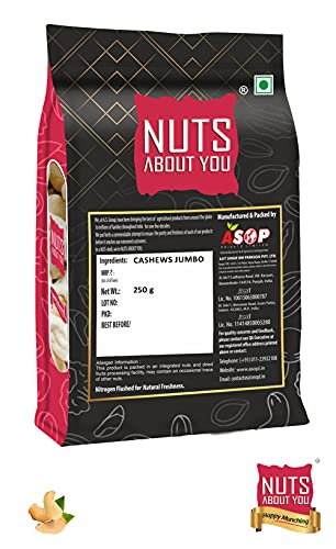 Nuts About You CASHEWS Jumbo, 250 g | 100% Natural | Jumbo Kernel | Crunchy | W240 grade | Kaju