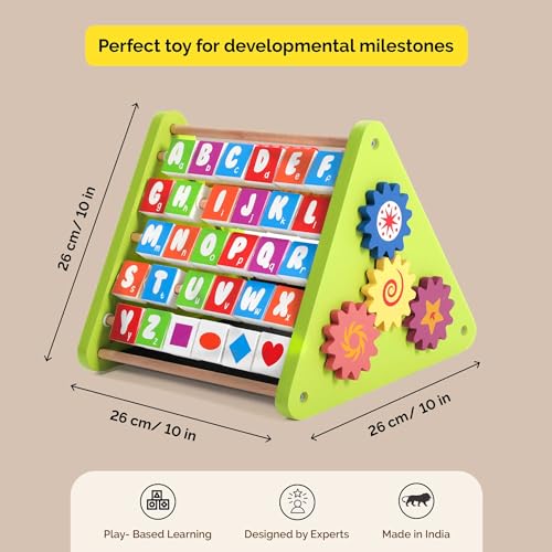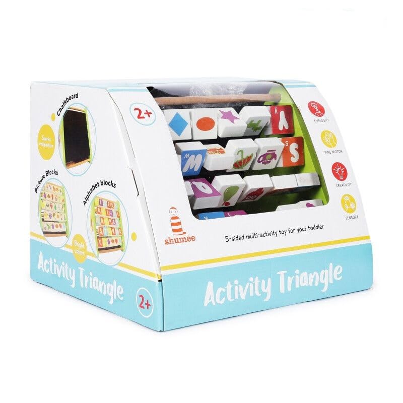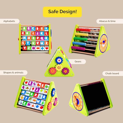 SUITABLE FOR AGES : 2 years+, perfect for toddlers as well as preschoolers. Learning toys, activity toys, and educational toys are all designed to help children learn and develop new skills while they play. One such toy is the activity triangle, which is a wooden toy that provides a variety of activities for children to engage in. The activity triangle typically includes an abacus, alphabet blocks, a whiteboard, a clock, and a routing board