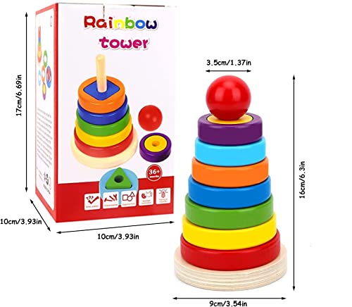 SAFE MATERIAL: This rainbow stacking tower toys is made of high-quality natural wood, and the surface is covered with multiple layers of non-toxic water-based paint. It has been carefully polished without any burrs , ensuring that kids will not be exposed to any danger during playing