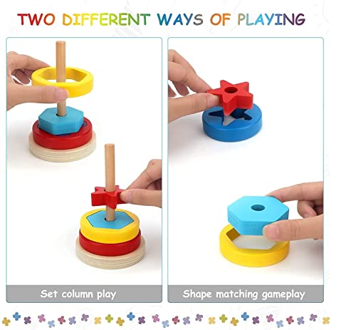 EXCELLENT EDUCATIONAL TOYS: Montessori stacking toys can develop color and geometric pattern recognition, hand-eye coordination and encouraging creativity & imagination, cultivate children’s ability to solve problems independently and game leads kids to discover concepts such as color, size, order, and counting