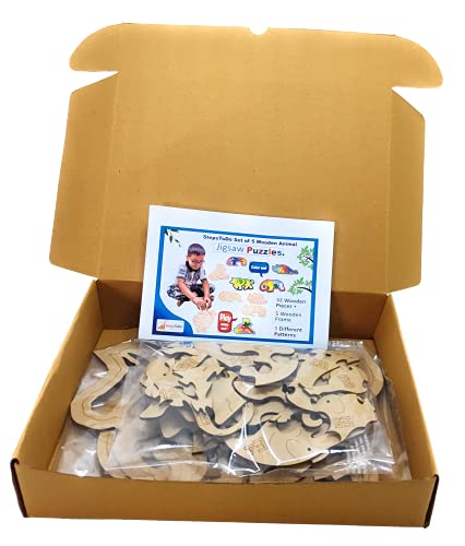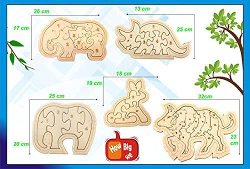 Set of 5 Wooden Jigsaw Puzzles of Animal Theme includes Elephant, Rabbit, T- Rax, Bull, and Elephants within A Elephant. This product material is 100% natural wood which is paintable with crayons, colour pencils, water colours or other colouring options of your choice.