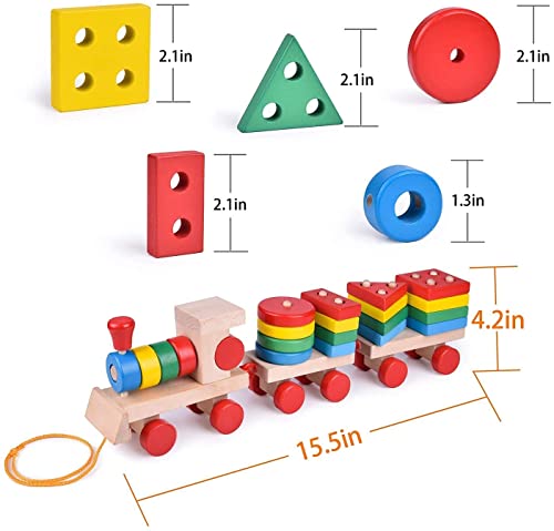 Tiny Toys 15.5 Inches Wooden Train Toddler Toys, 4 Shape Sorter and Stacking Wooden Toys, Puzzle Toys for 1 2 3 Year Old Boys Girls, Preschool Educational Toys(Shape Train)